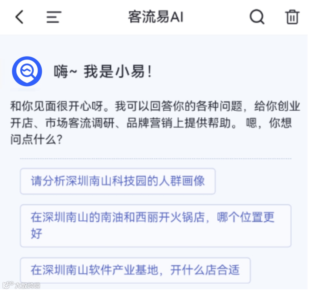 及刻旗下核心产品客流易,以海量的时空大数据为基石,深度融合智能场景识别技术与顶尖人工智能算法引擎,已推出AI辅助决策功能,上线测试阶段广受用户好评,成为诸多商户的开店选址决策顾问。
