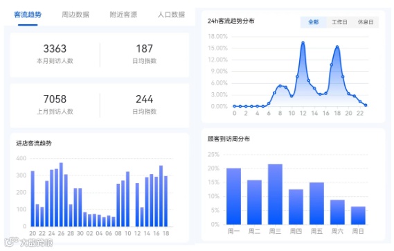 店铺上月\本月到访人数、进店客流趋势、客流时间分布等等,都可以作为你选取品牌加盟的数据参考。