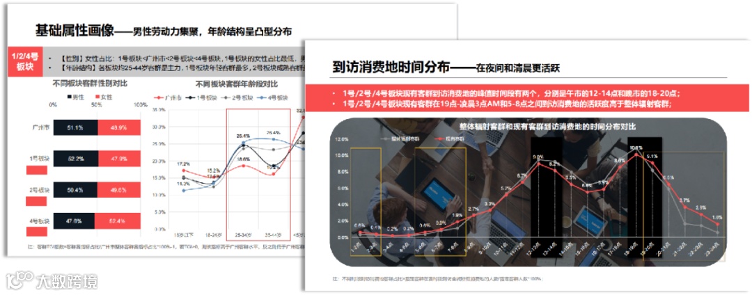 客群在日间、午间、夜间的不同消费表现,在化妆品业态、文化娱乐方面、家居、餐饮、美妆、儿童等指定类别进行细致化研究。