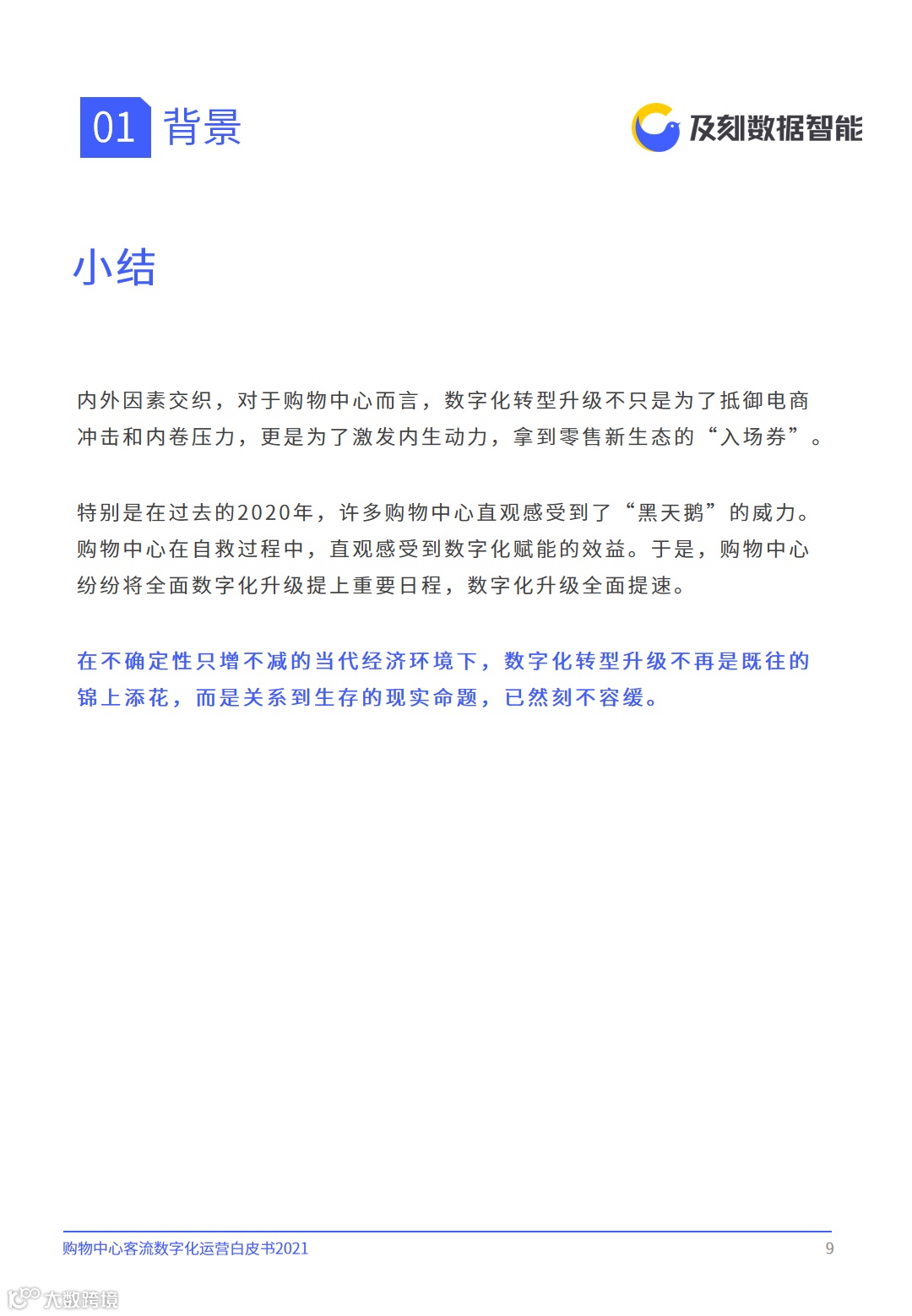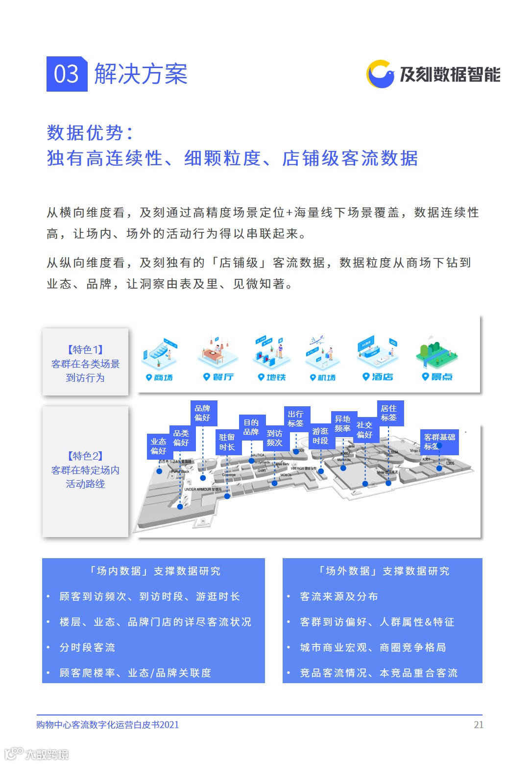 及刻从对行业的观察、思考出发,结合服务经验,特编制《购物中心客流数字化运营白皮书2021》,希望能够为购物中心从业者提供参考、启迪。