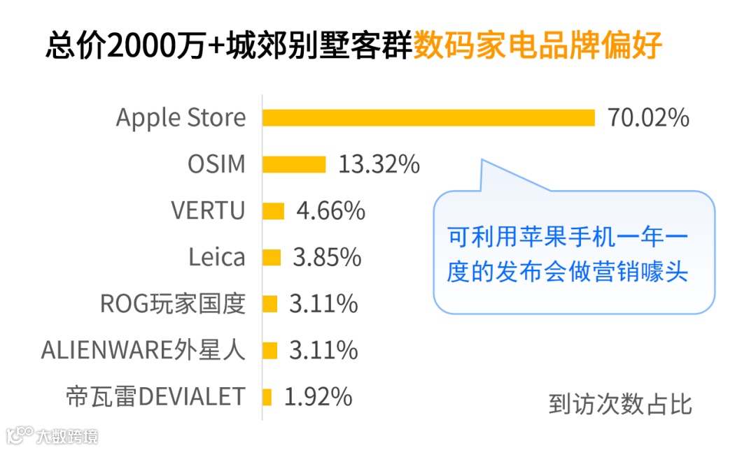 在这些客群喜欢的数码家电品牌里,苹果是最受欢迎的品牌,可以利用苹果手机一年一度的发布会做一些营销噱头。