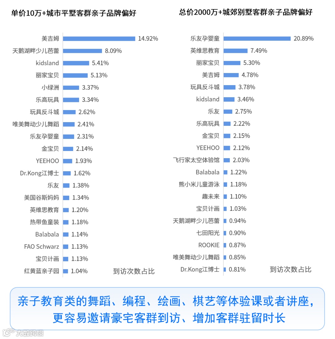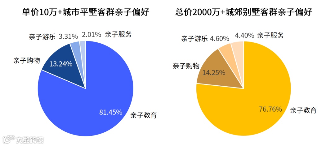 作为售楼处常用的亲子DIY、亲子手工、亲子游乐等营销暖场活动,很难留住高端客群。总价2000万+城郊别墅客群在亲子教育方面的投入占亲子总体花费的75%以上,单价10万+城市平墅客群在亲子教育方面的投入更是超过80%。