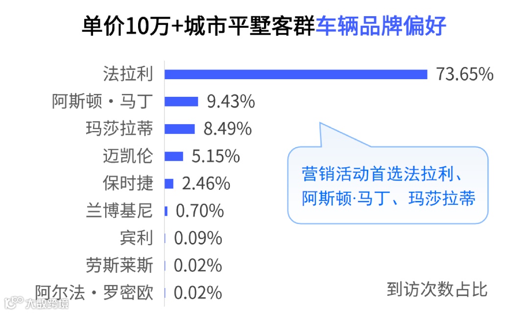 法拉利、玛莎拉蒂、保时捷这些众所周知的豪车品牌是这些高端豪宅客群的最爱豪车品牌,越受普通大众熟知,越能凸显身份和地位。阿斯顿·马丁、迈凯伦、兰博基尼等更高级别的豪车也有一定的欢迎度。