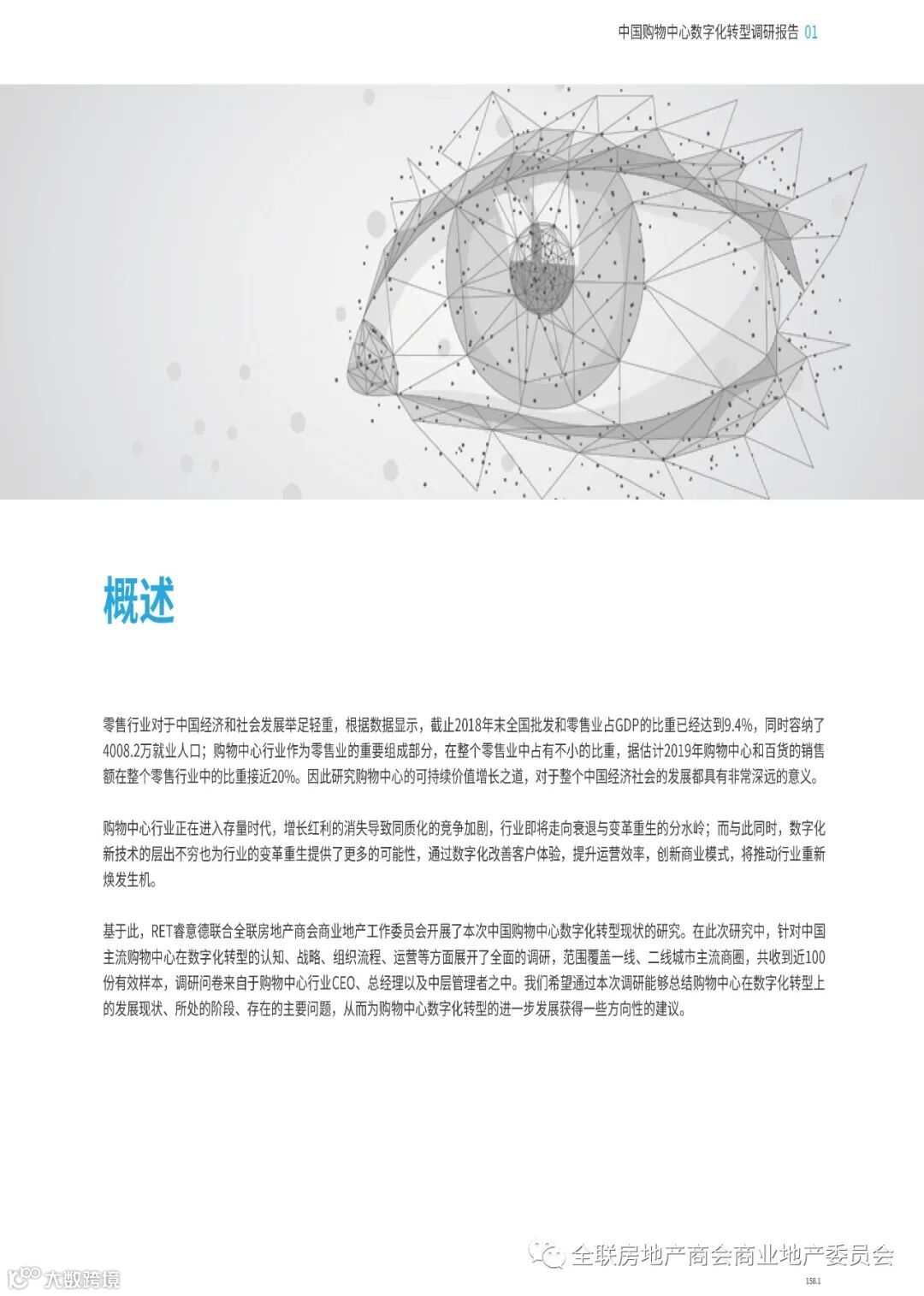 近日,全联房地产商会商业地产工作委员会与RET睿意德联合发布《中国购物中心数字化转型调研报告》,对中国购物中心数字化转型的现状进行了梳理,并对趋势作出预判。
