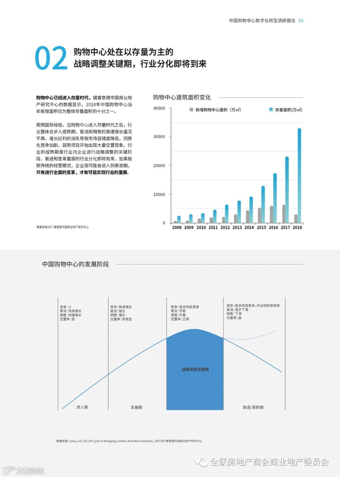 购物中心行业正在进入存量时代,增长红利的消失导致同质化的竞争加剧,行业即将走向变革重生的分水岭。而与此同时,数字化新技术的层出不穷也为行业的变革重生提供了更多的可能性,通过数字化改善客户体验,提升运营效率,创新商业模式,将推动行业重新焕发生机。