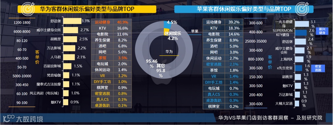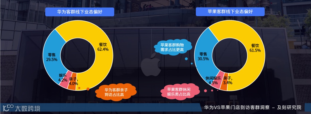 华为客群重在餐饮与亲子消费,苹果客群更爱购物与自身娱乐