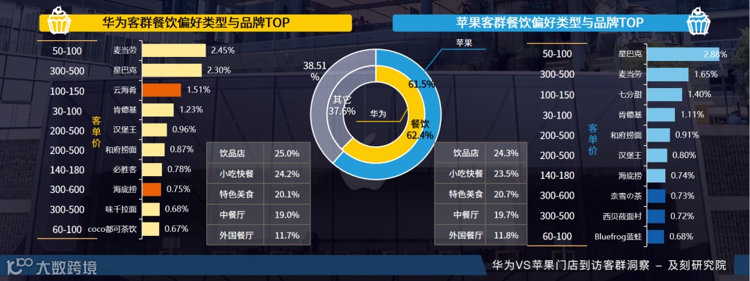 华为客群常规中餐为主,苹果客群网红尝鲜热衷