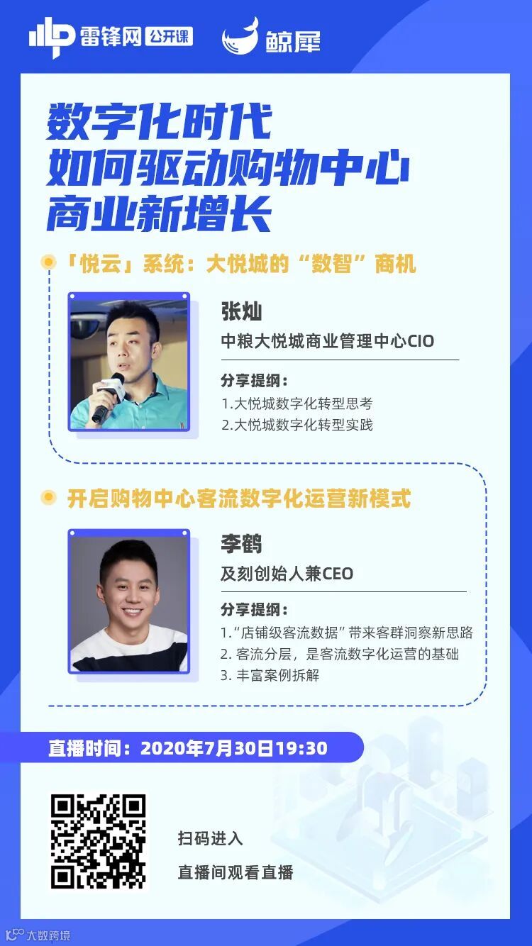 如此背景之下,传统商场的数字化转型已成必然。为此,雷锋网鲸犀频道邀请了中粮大悦城商业管理中心CIO 张灿和及刻创始人兼CEO李鹤,一起与大家探讨“数字化时代,如何驱动购物中心实现商业新增长”。