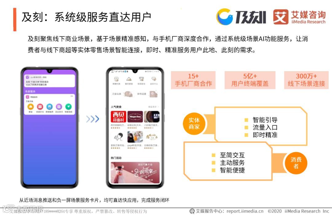 报告观察认为,包括苏宁、天猫等在内的零售商家及互联网巨头纷纷布局智慧场景服务,亦涌现出及刻等典型服务商代表。