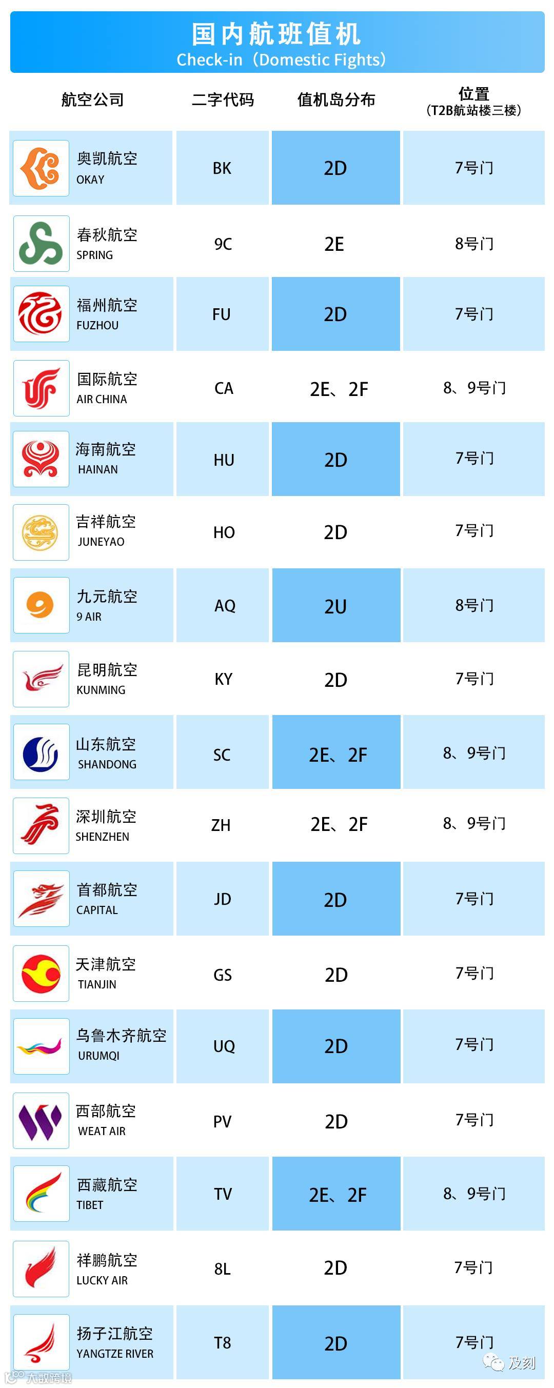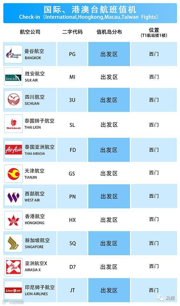 重庆江北国际机场的值机区分布在T1、T2A和T2B航站楼。其中T1航站楼为国际、港澳台航班值机区。