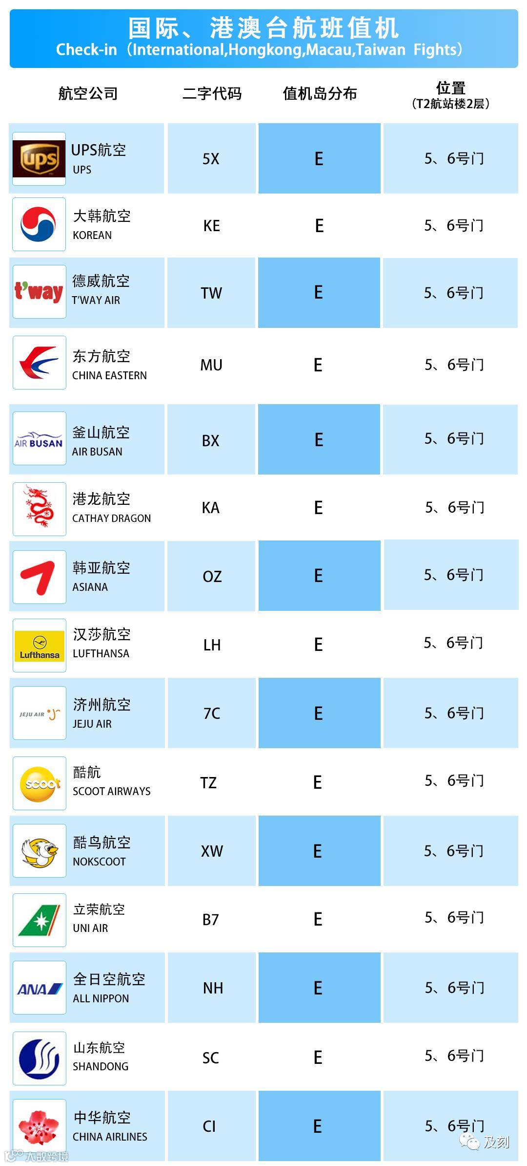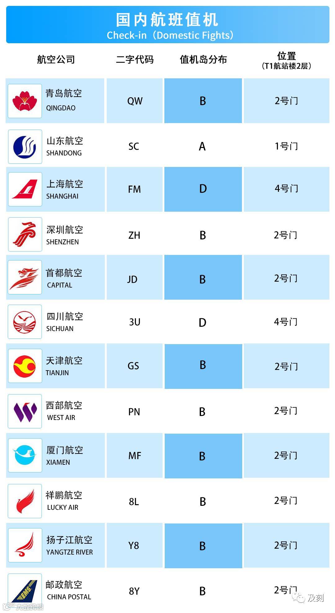 【机场攻略】青岛流亭国际机场值机柜台分布图