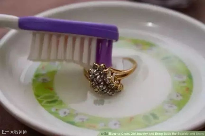 如果你的首饰上镶嵌有宝石,宝石还是用胶粘上去的话,就不能和水接触了,那就可以使用下面较为柔和的清洗方法。