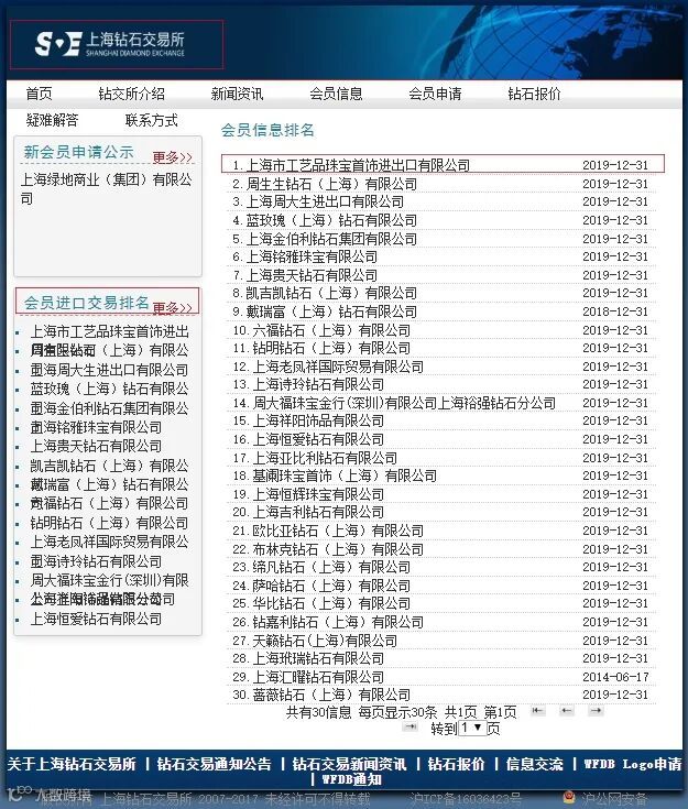 上海钻石交易所2019年会员单位进口交易排名出炉,上海市工艺品珠宝首饰进出口有限公司再次荣膺第一!