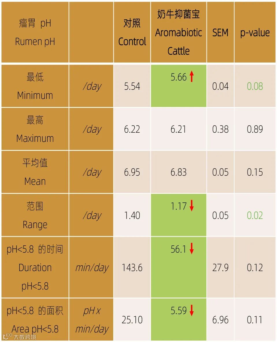 表3:奶牛抑菌宝对瘤胃pH波动的影响