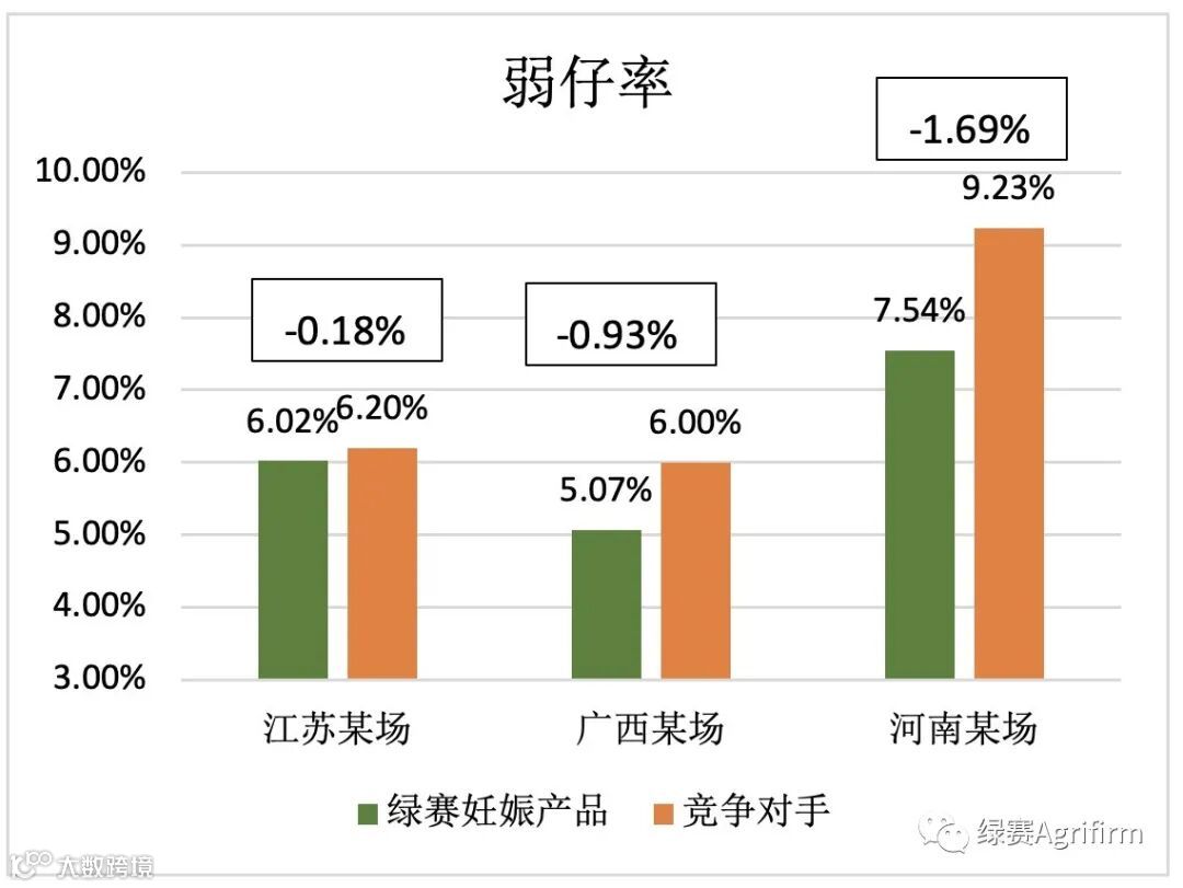 绿赛通过特殊的妊娠理念组合,可以提高母猪(尤其经产母猪)的仔猪均匀度,降低弱仔率。这对于高产母猪尤为重要,因为更高的仔猪均匀度将提升猪群的整体健康度和生长性能。