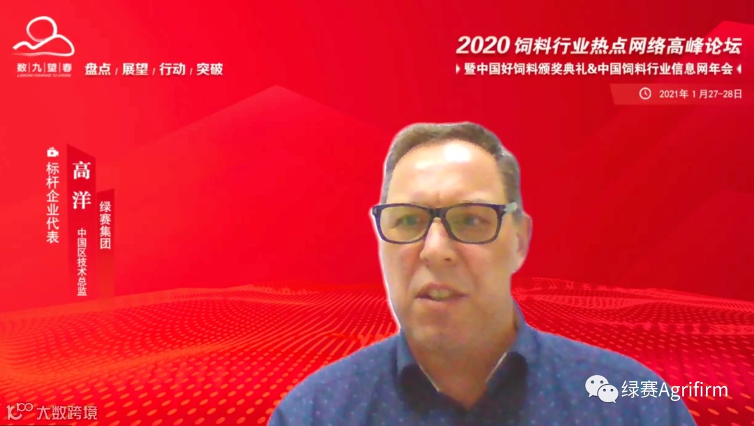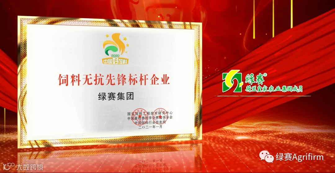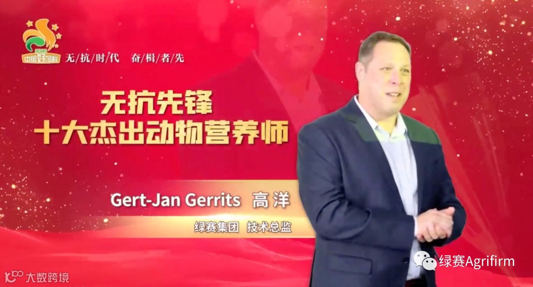 绿赛Agrifirm2021年1月27日,“中国好饲料2020——禁抗元年,无抗先锋中国行”颁奖典礼盛大举行,绿赛集团荣获“饲料无抗先锋标杆企业”荣誉称号,宝贝安荣获“无抗先锋饲料品牌·杰出奖”荣誉称号,Gert-Jan Gerrits高洋先生荣获“无抗先锋十大杰出动物营养师”荣誉称号。