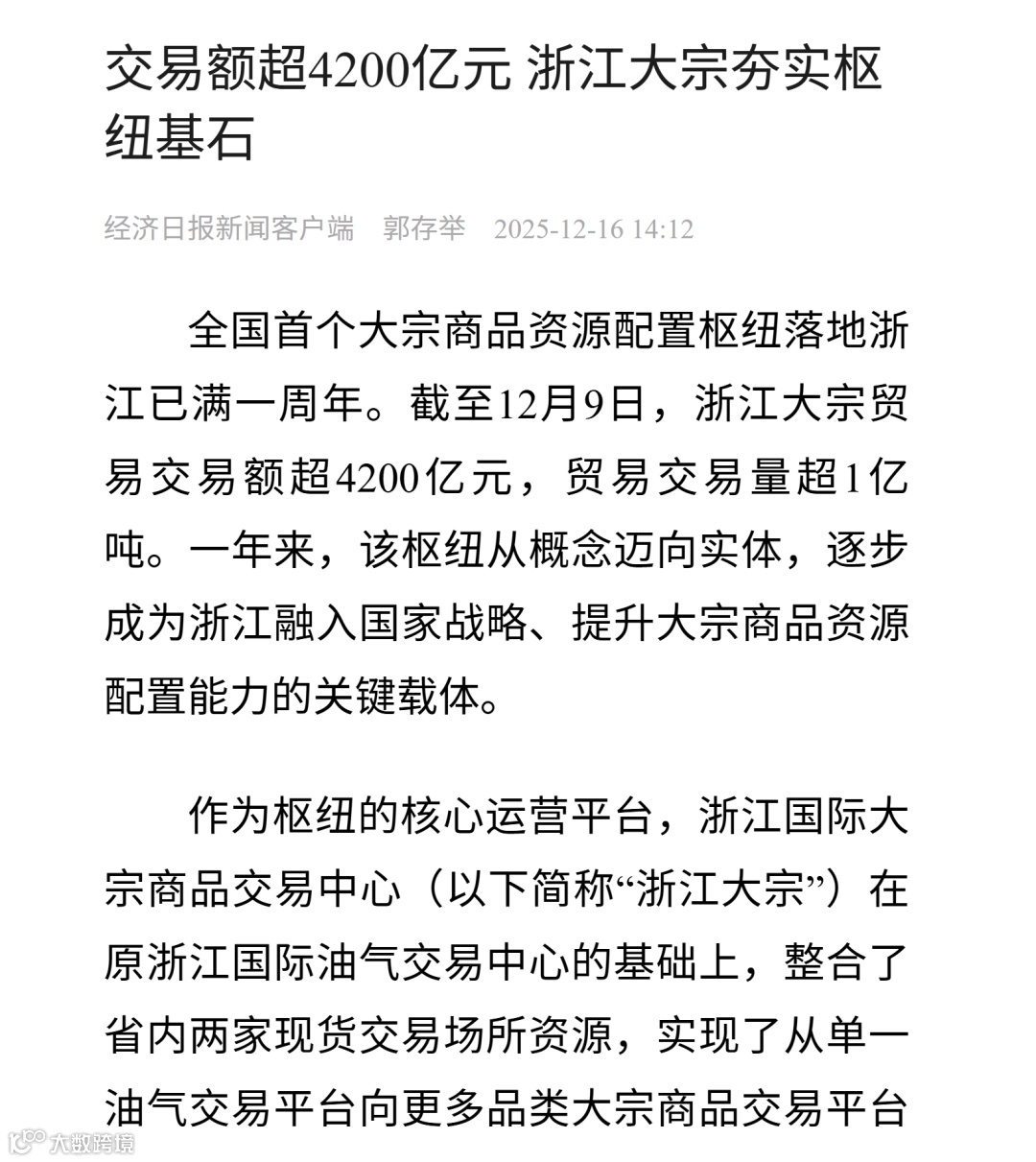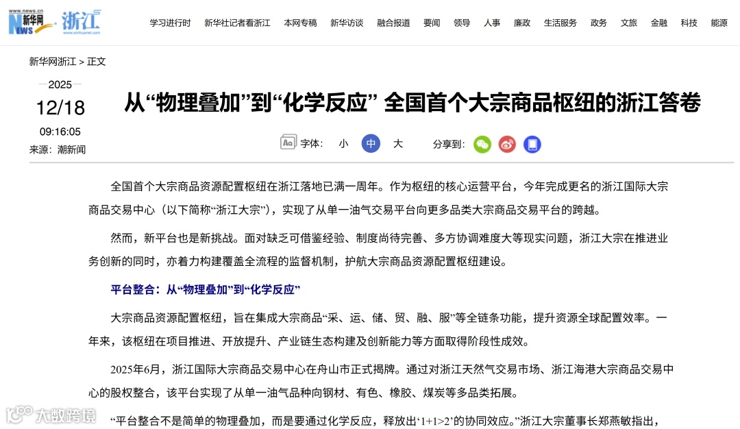 从平台整合到共建联盟,从打破国际定价依赖到构建“舟山价格”体系,浙江大宗的发展轨迹,清晰映射出一条通过提升平台能级来服务国家战略的路径。