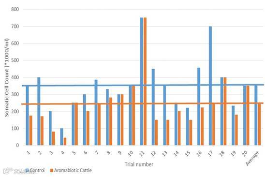 许多实际饲养实验证实了,抑菌宝对体细胞数以及新增乳房感染的积极影响。免疫系统是一种高耗能机制,特别在体细胞数提高的时候。一个多功能免疫系统是健康的关键,能降低体细胞数量并且使动物有更好的生长表现,因为能量被节约了。中链脂肪酸减少抗生素的使用,大大降低抗生素耐药性的发生。