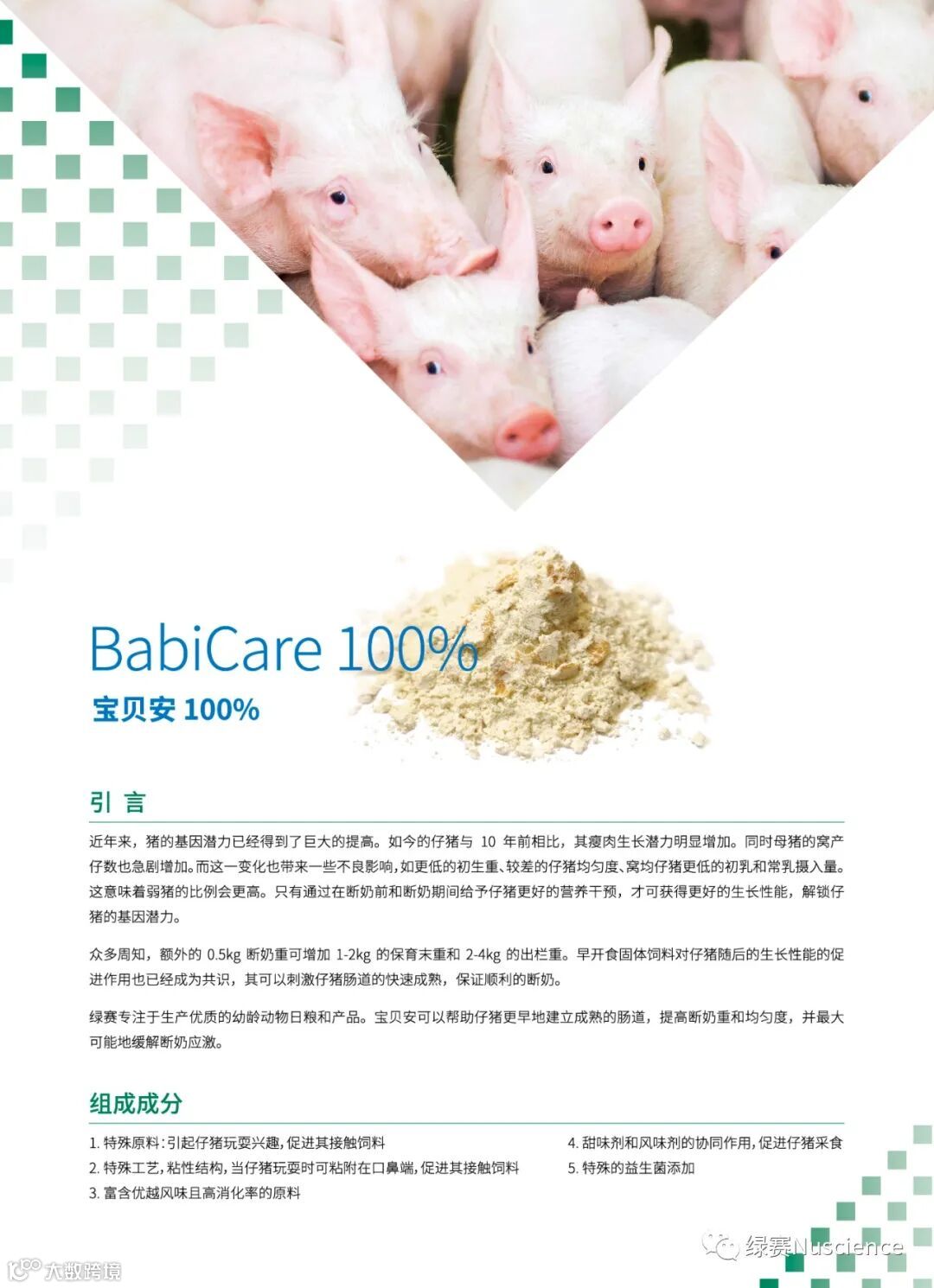 同时安利一款绿赛最新推出的教槽产品,禁抗的首选,让您禁抗无忧!
