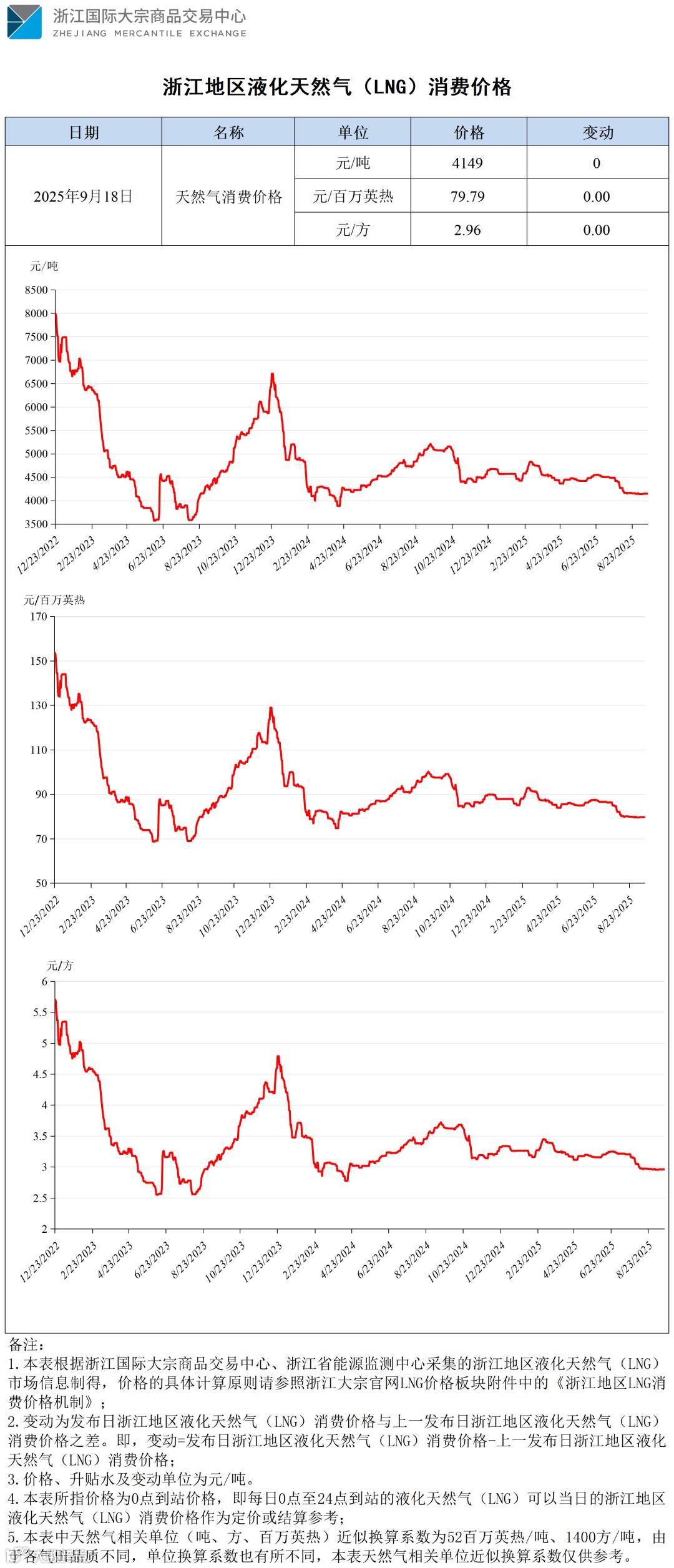 【价格指数】浙江地区液化天然气(LNG)消费价格(20250918)