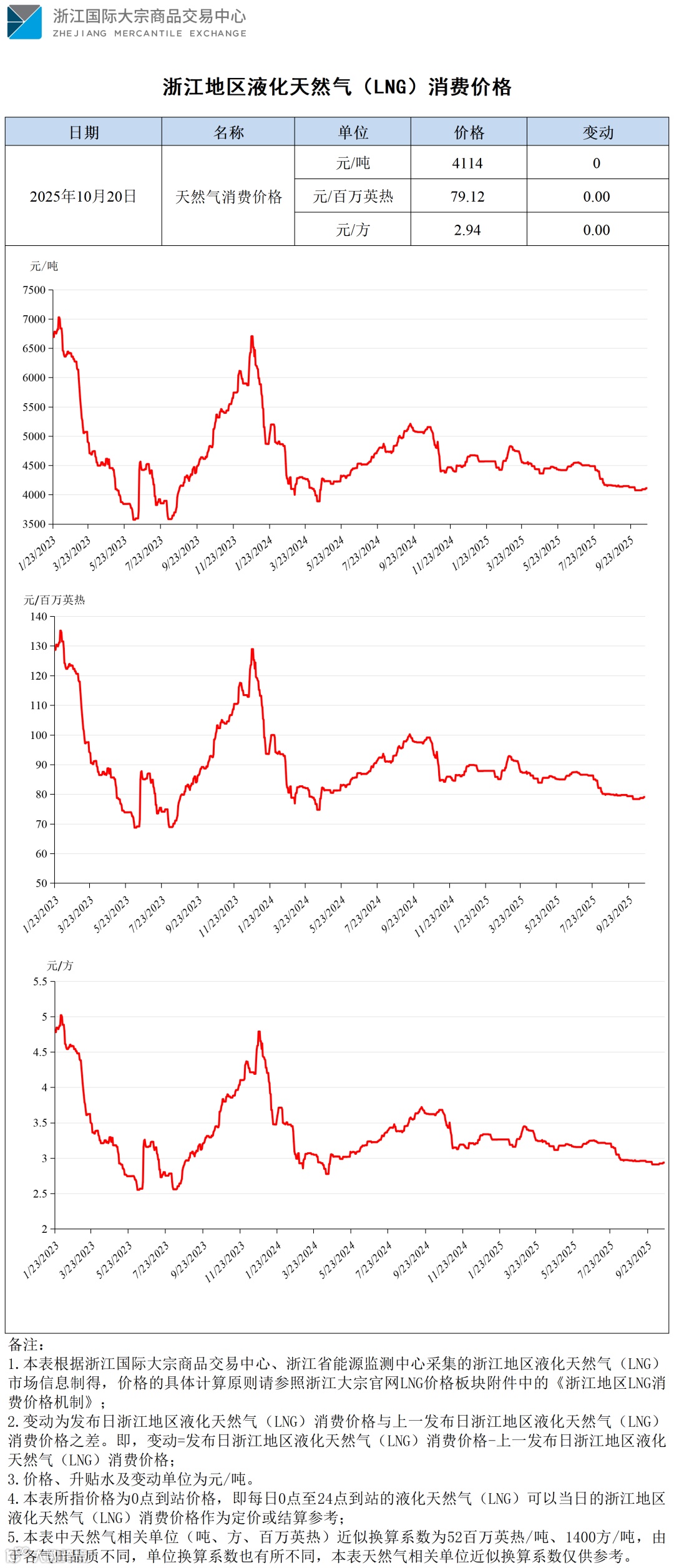 【价格指数】浙江地区液化天然气(LNG)消费价格(20251020)