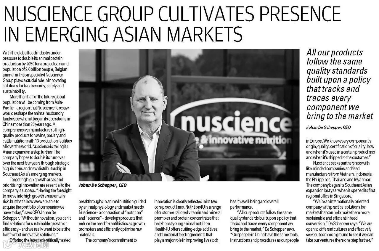 香港英文报纸《南华早报》本月对总部位于比利时根特的Nuscience集团——首席执行官Johan De Schepper,就公司的亚洲发展战略进行专访。