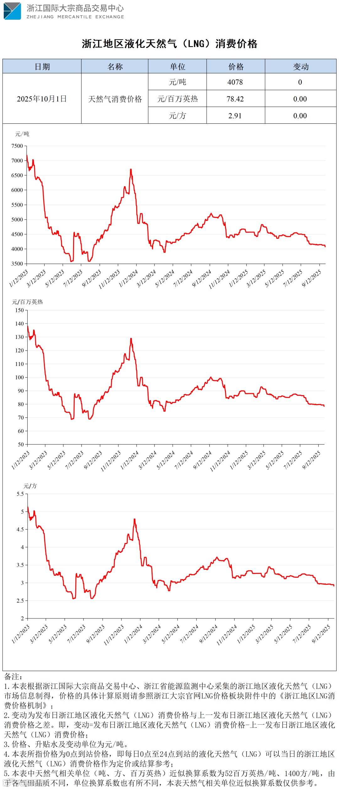浙江地区液化天然气(LNG)消费价格