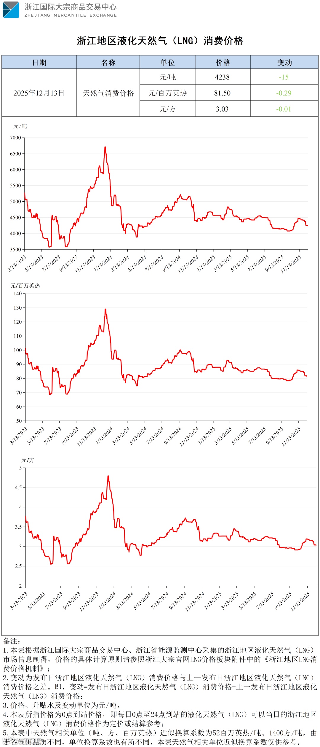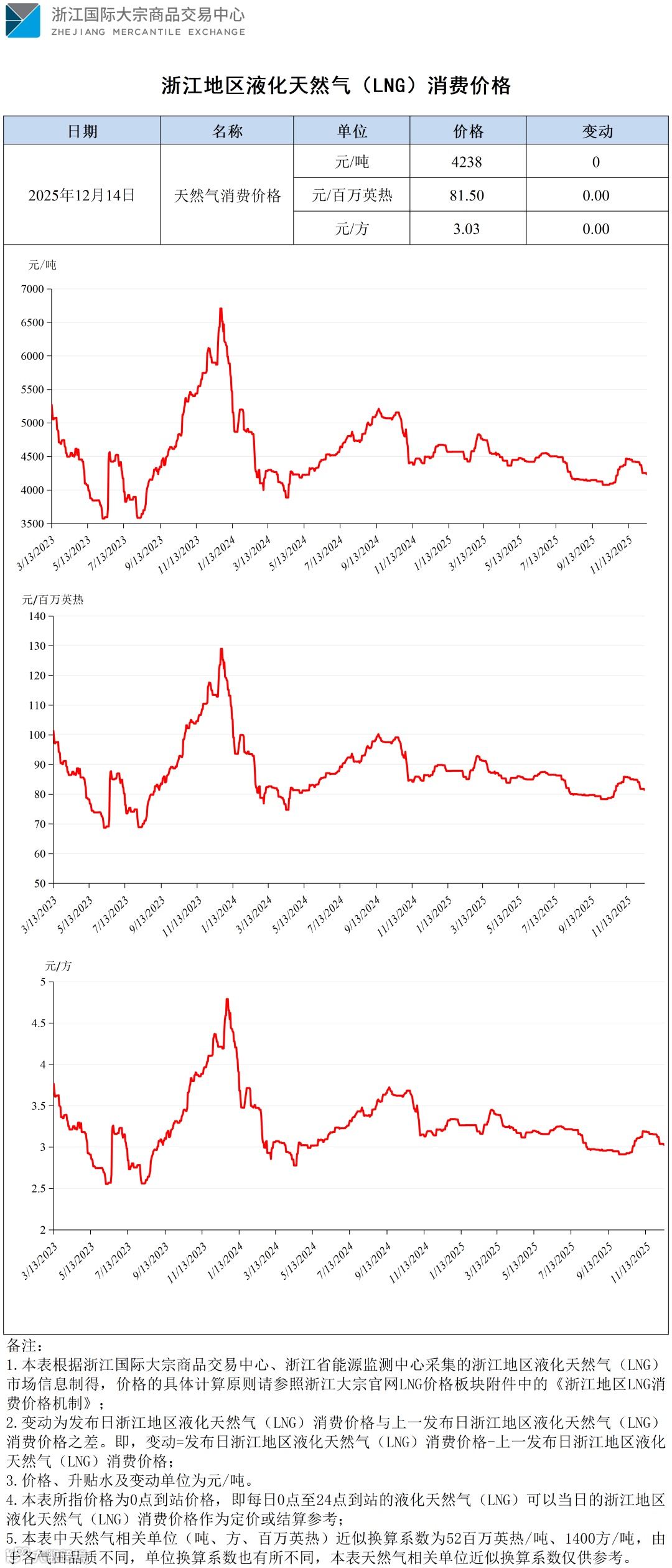 【价格指数】浙江地区液化天然气(LNG)消费价格(20251213-20251214)