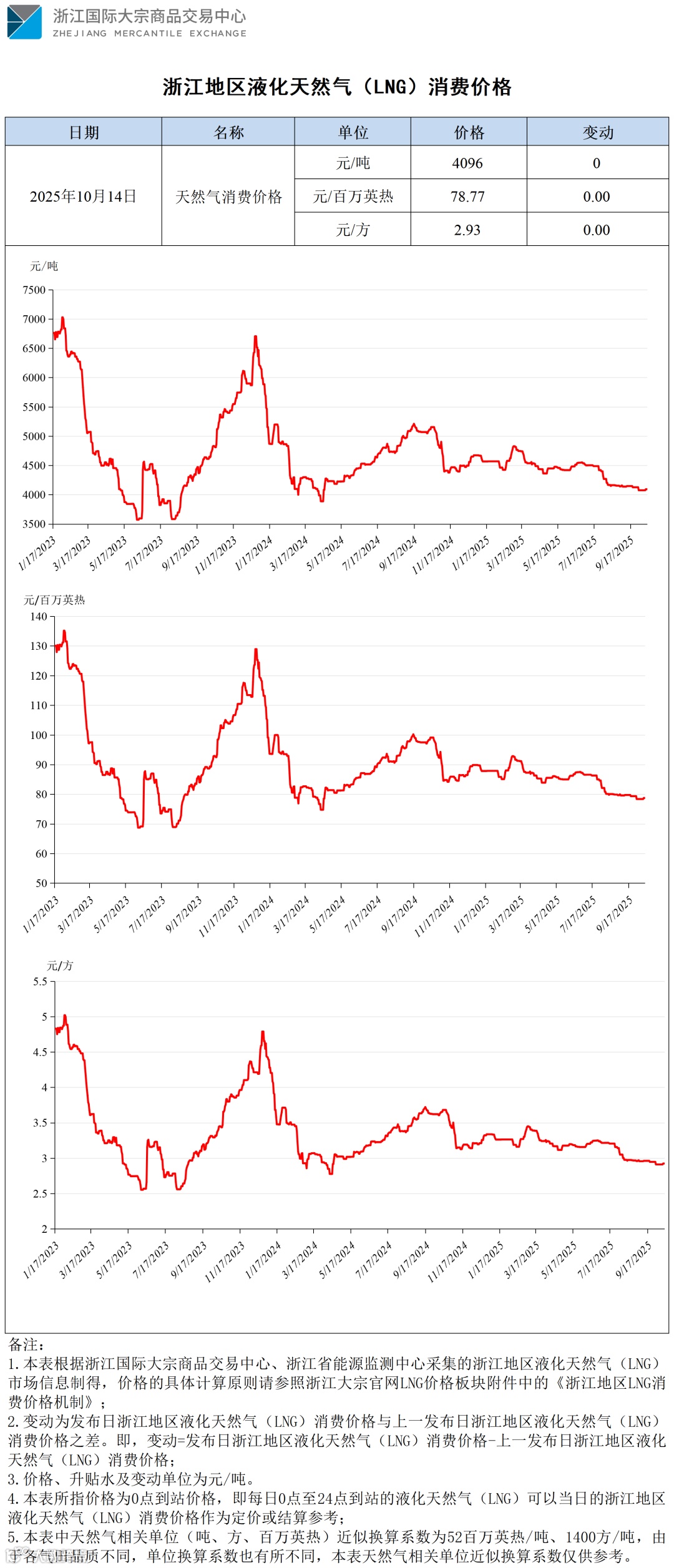 【价格指数】浙江地区液化天然气(LNG)消费价格(20251014)