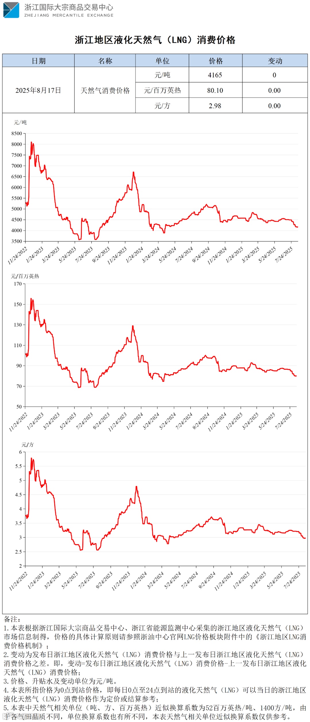 【价格指数】浙江地区液化天然气(LNG)消费价格(20250816-20250817)