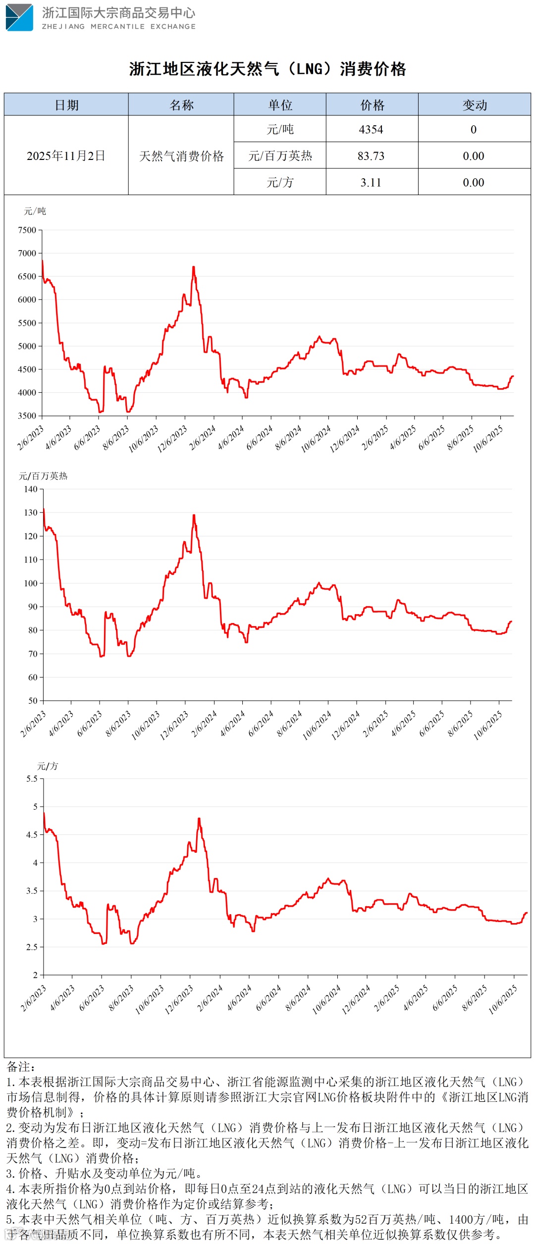 【价格指数】浙江地区液化天然气(LNG)消费价格(20251101-20251102)