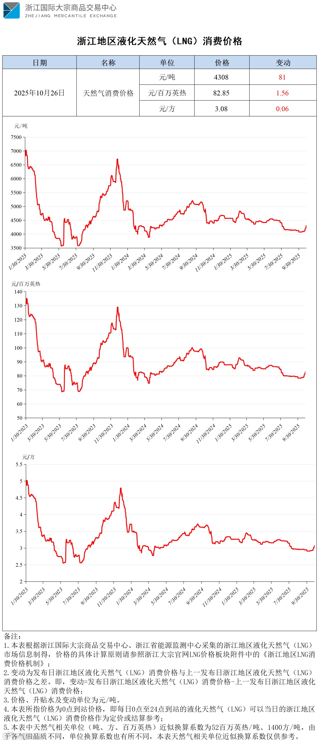 【价格指数】浙江地区液化天然气(LNG)消费价格(20251025-20251026)