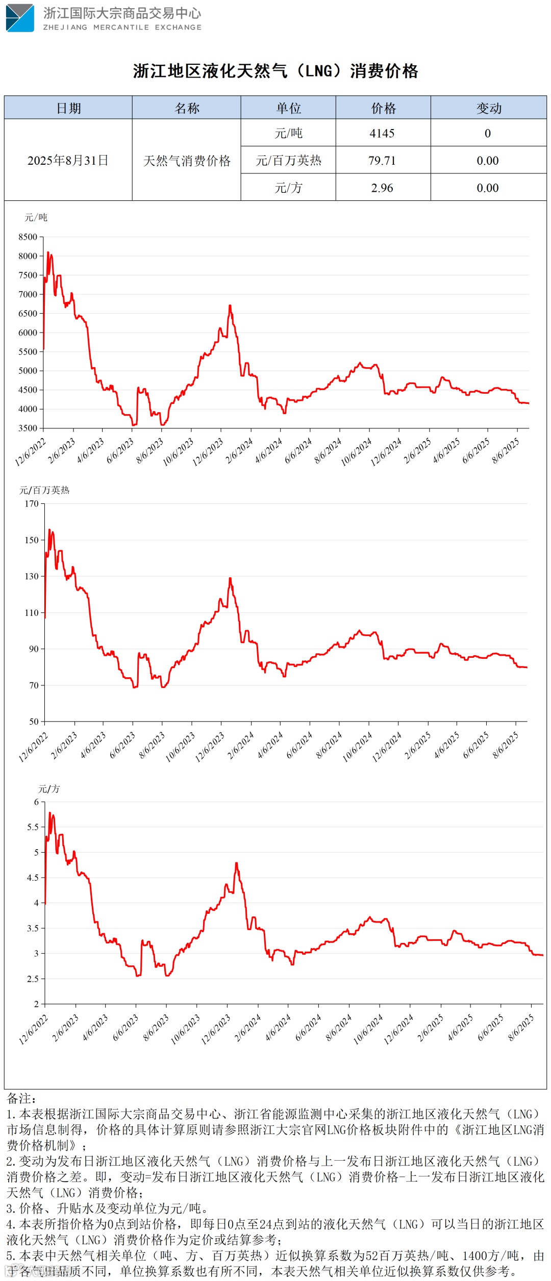 【价格指数】浙江地区液化天然气(LNG)消费价格(20250830-20250831)