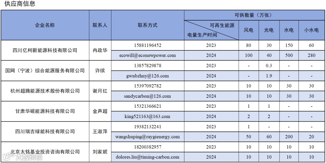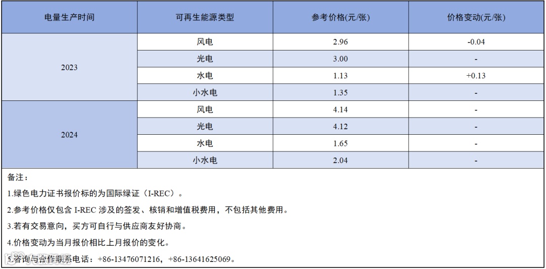 国际贸易绿色电力证书卖方报价(2024年12月)