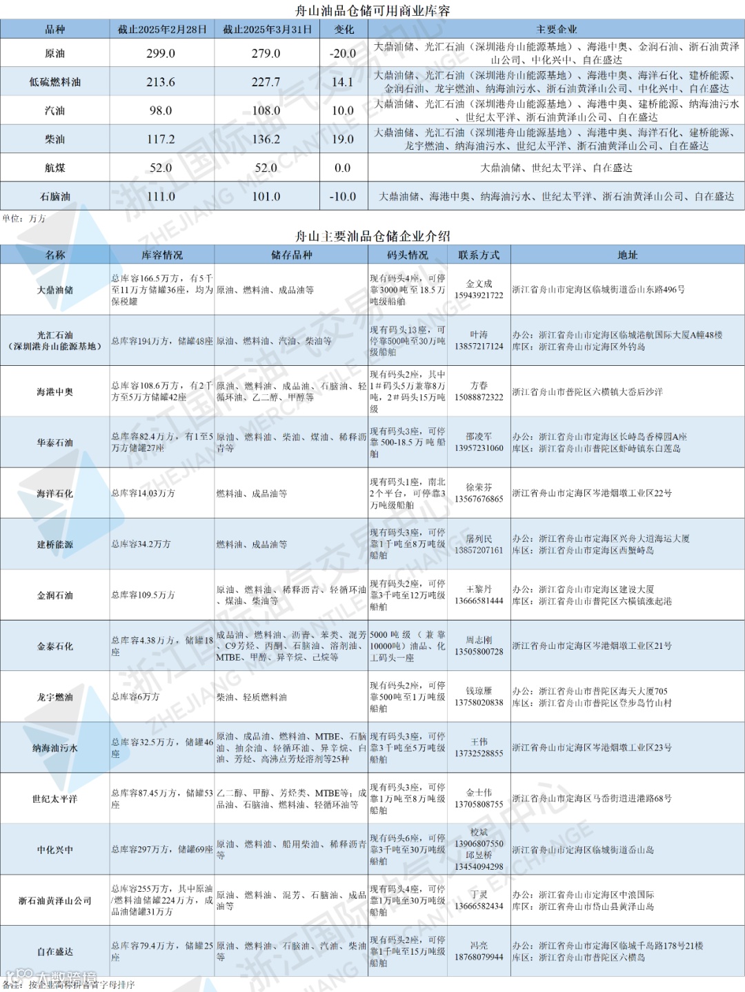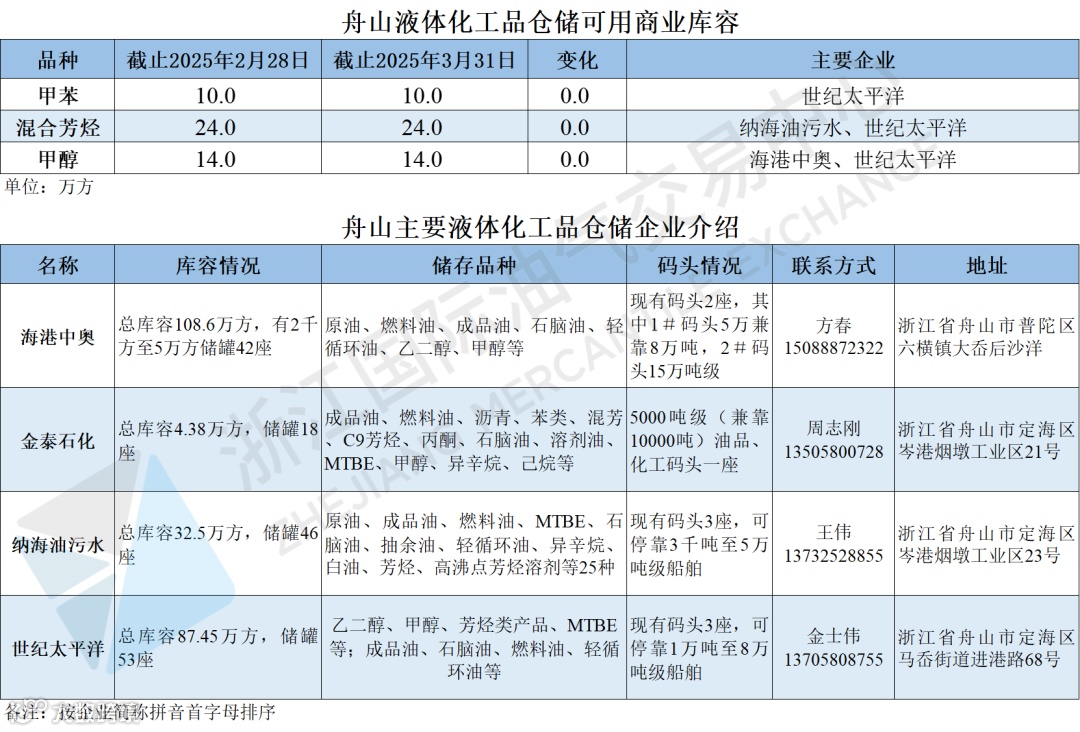 舟山液体化工品仓储可用商业库容