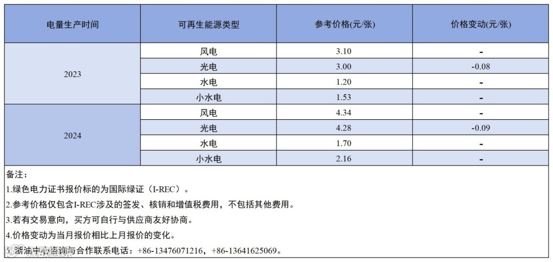 国际贸易绿色电力证书卖方报价(2024年10月)