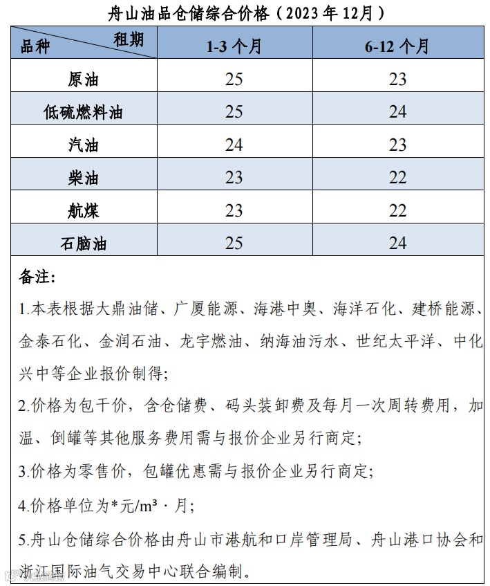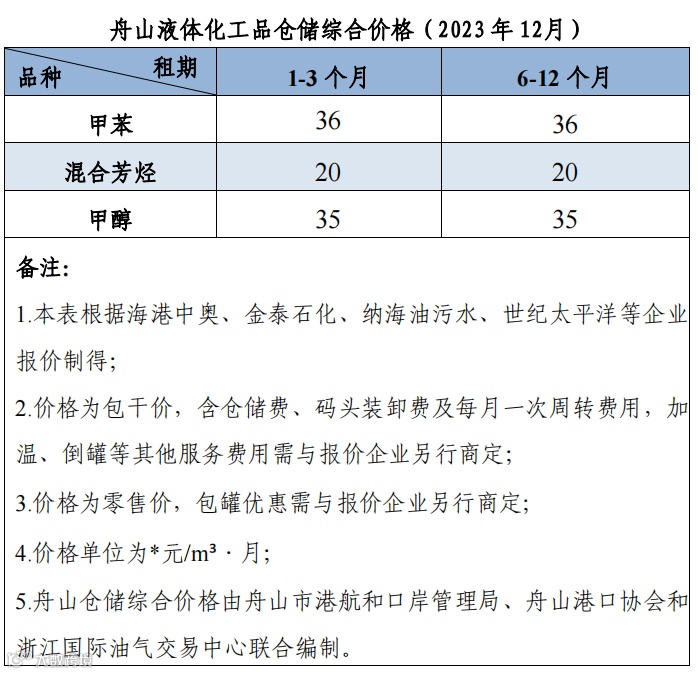 舟山仓储综合价格(2023年12月)