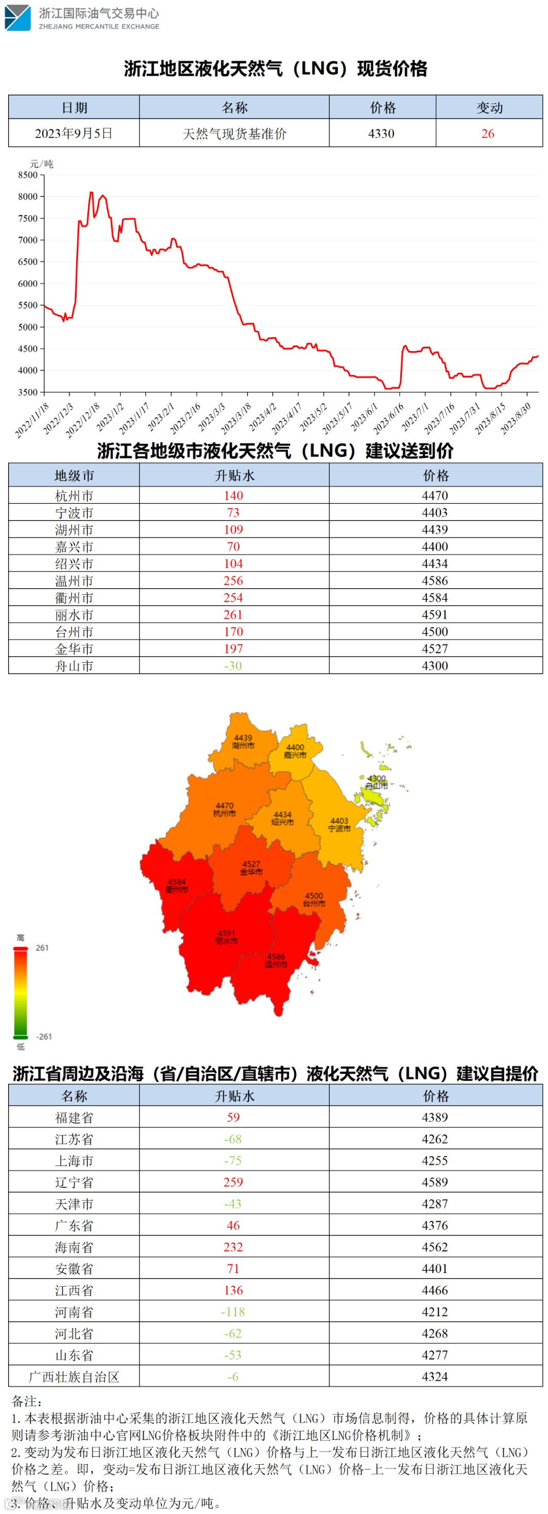 【价格指数】浙江地区液化天然气(LNG)价格(20230905)