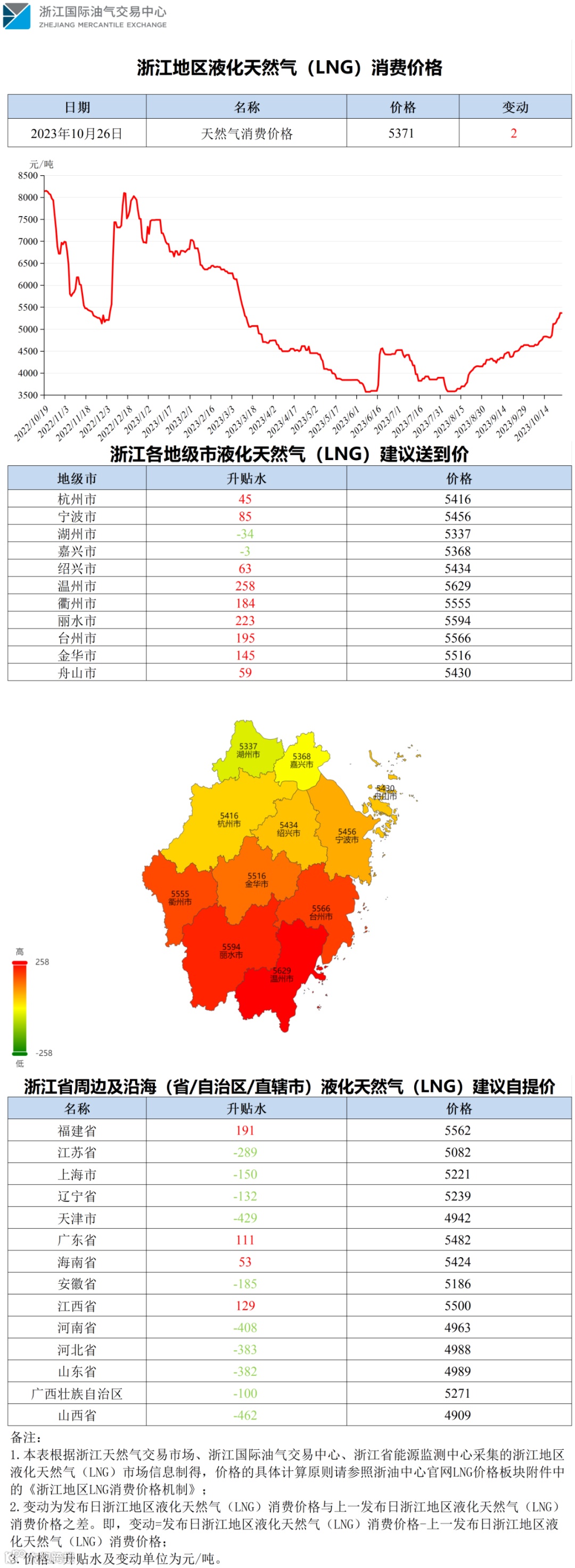 【价格指数】浙江地区液化天然气(LNG)消费价格(20231026)
