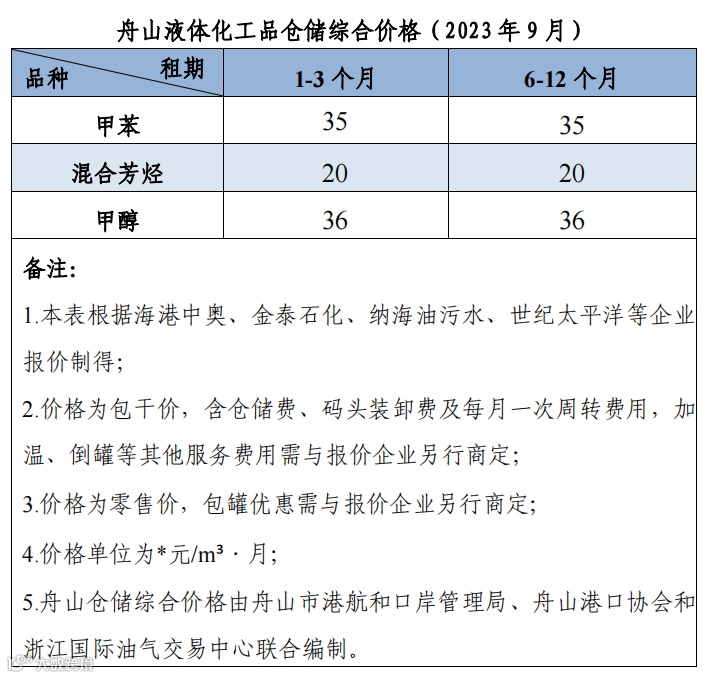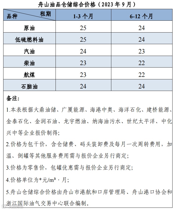 舟山仓储综合价格(2023年9月)