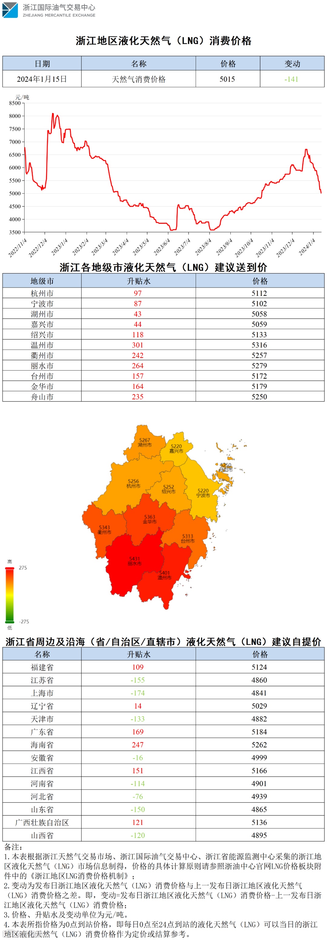 【价格指数】浙江地区液化天然气(LNG)消费价格(20240115)