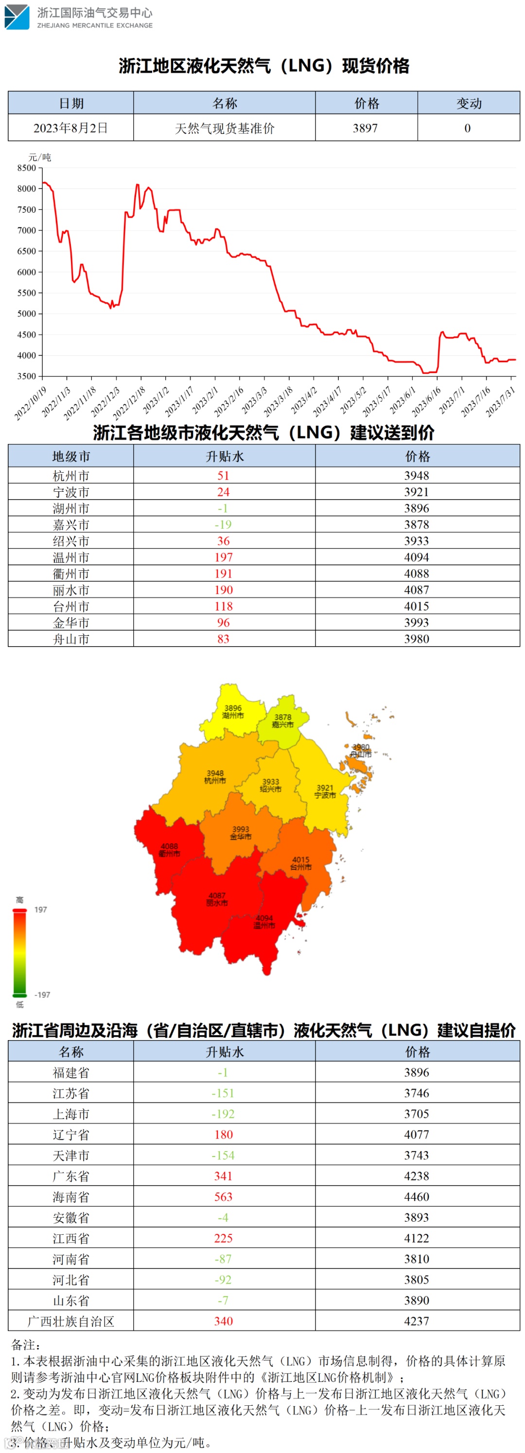 【价格指数】浙江地区液化天然气(LNG)价格(20230802)