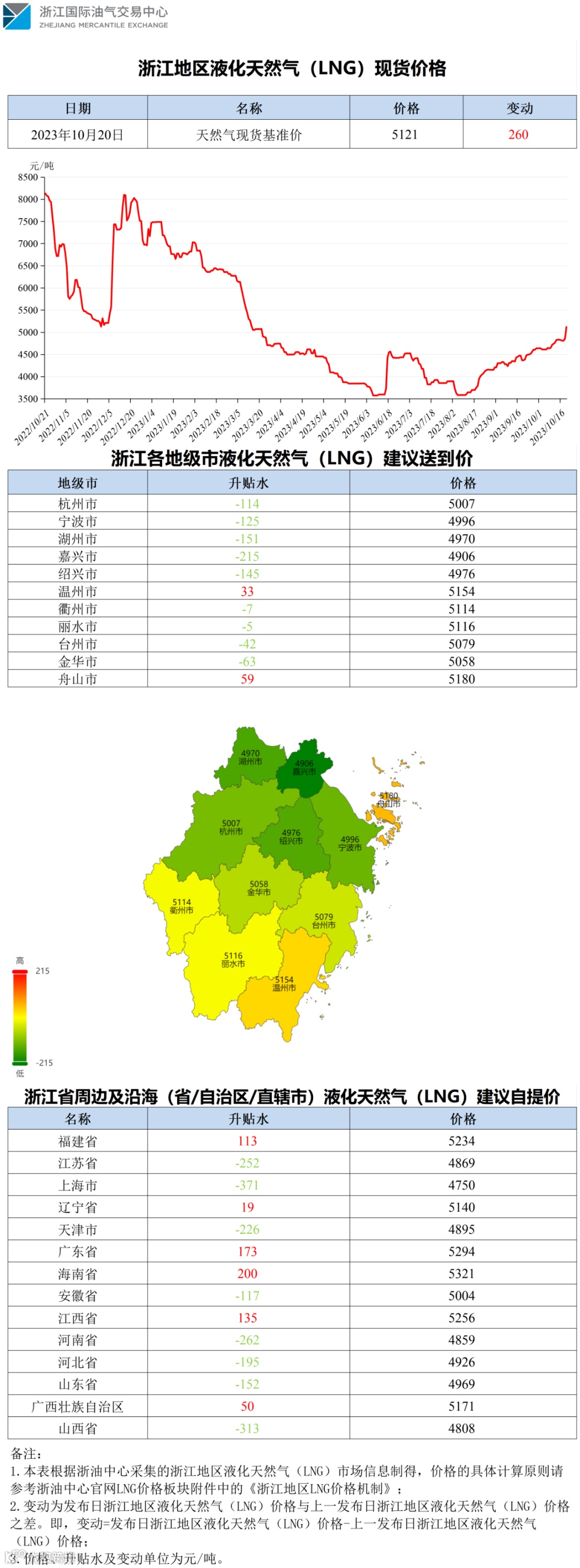 【价格指数】浙江地区液化天然气(LNG)价格(20231020)