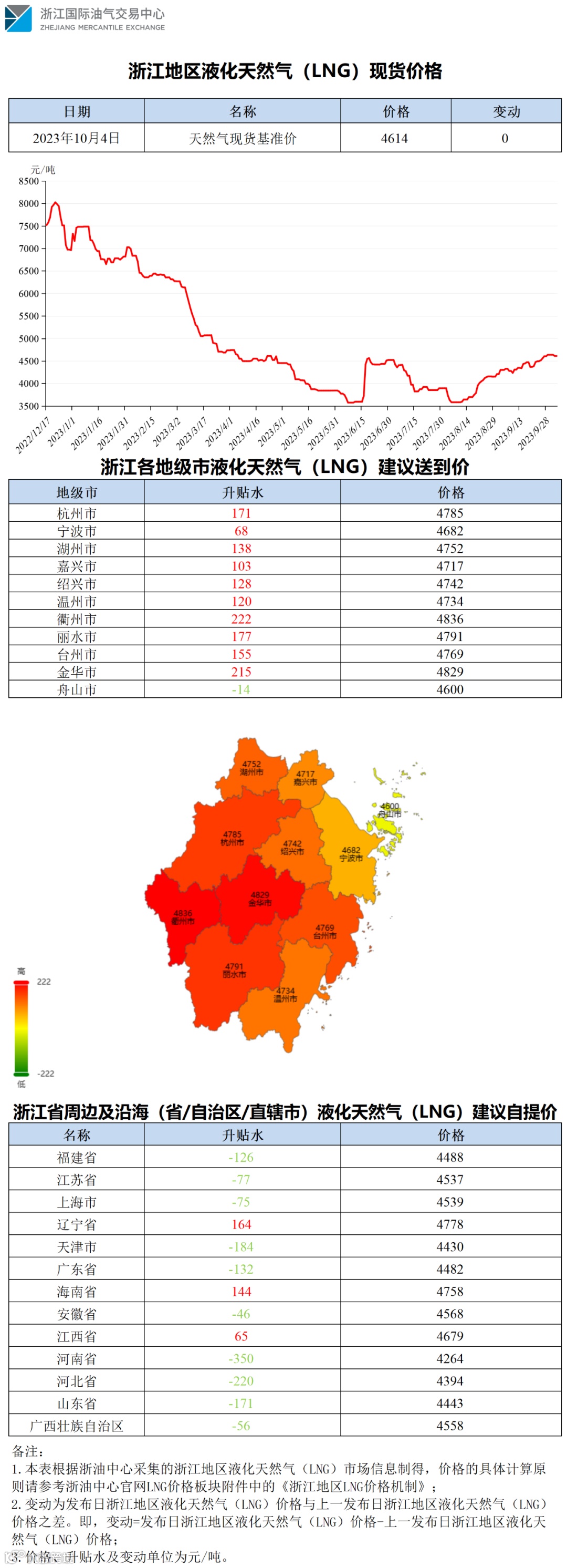 浙江地区液化天然气(LNG)价格