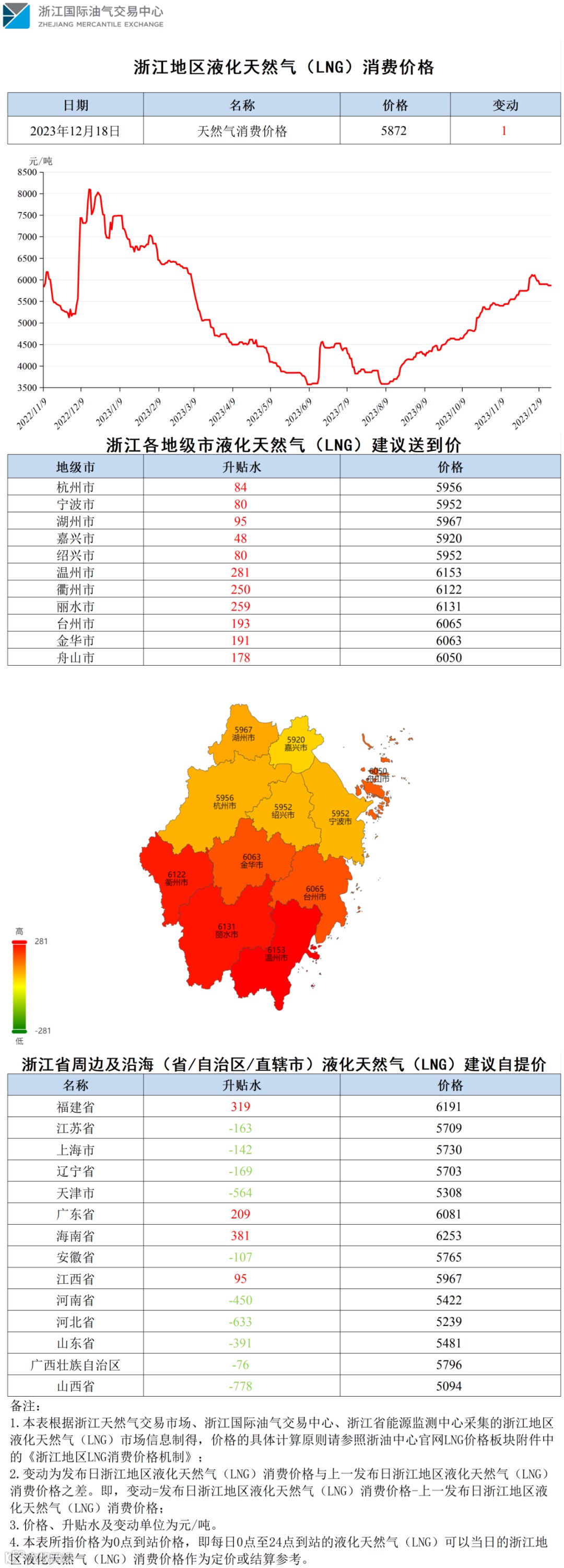 【价格指数】浙江地区液化天然气(LNG)消费价格(20231218)
