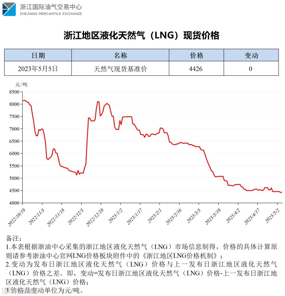【价格指数】浙江地区液化天然气(LNG)价格(20230505)