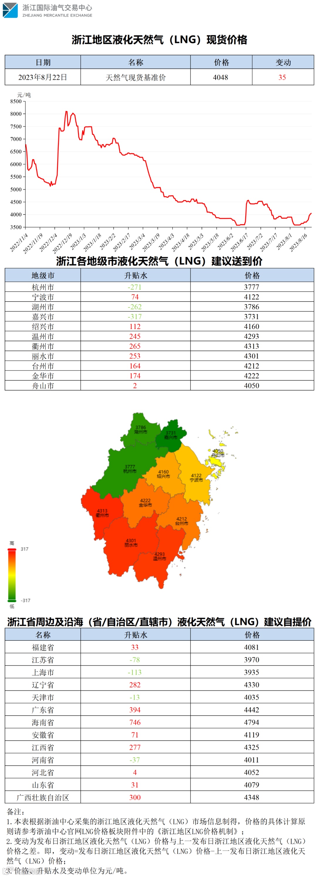【价格指数】浙江地区液化天然气(LNG)价格(20230822)
