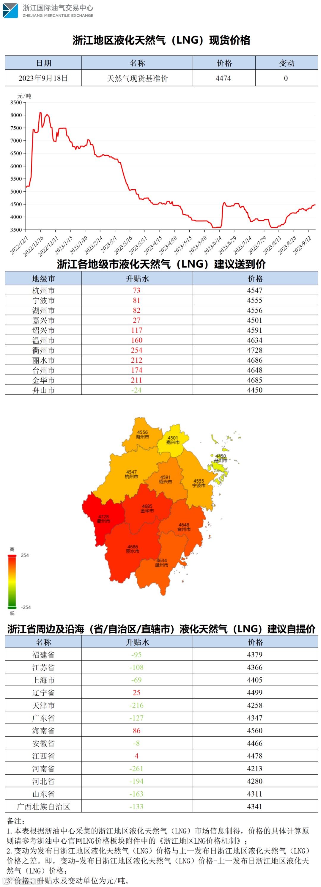 【价格指数】浙江地区液化天然气(LNG)价格(20230918)