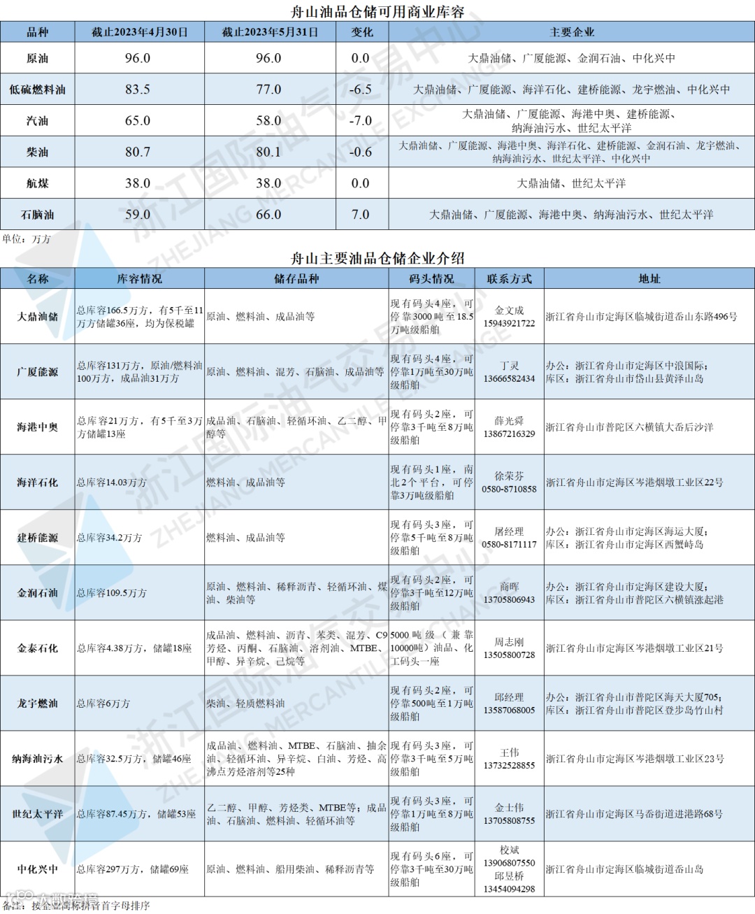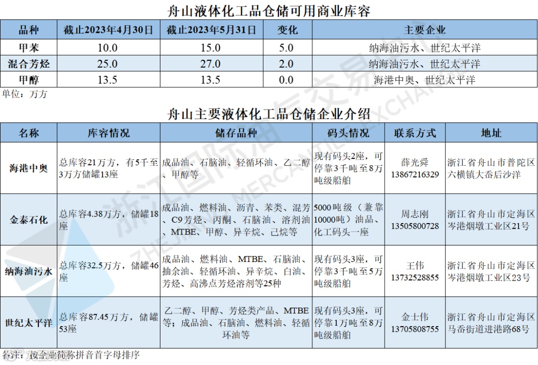 舟山液体化工品仓储可用商业库容