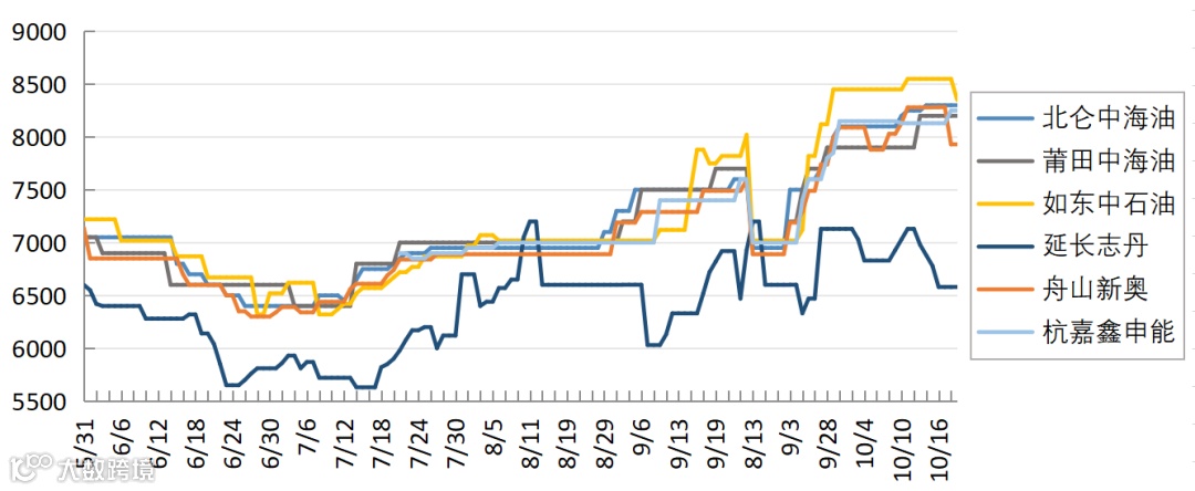今日上游多维稳,如东接收站高价补跌100元/吨至8350元/吨,近日部分工业停工,城燃补库需求大幅减少,市场交投氛围偏弱,目前南北已经形成合理的套利空间,价格波动的影响因素有限,预计后市价格仍会以维稳为主,部分高价或有补跌。